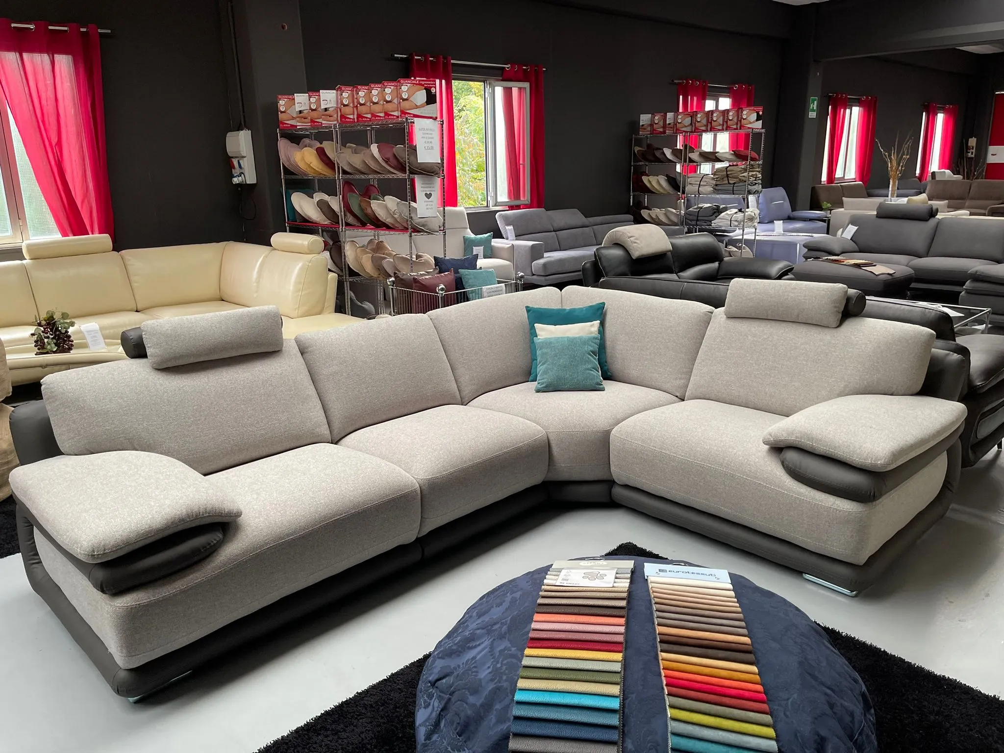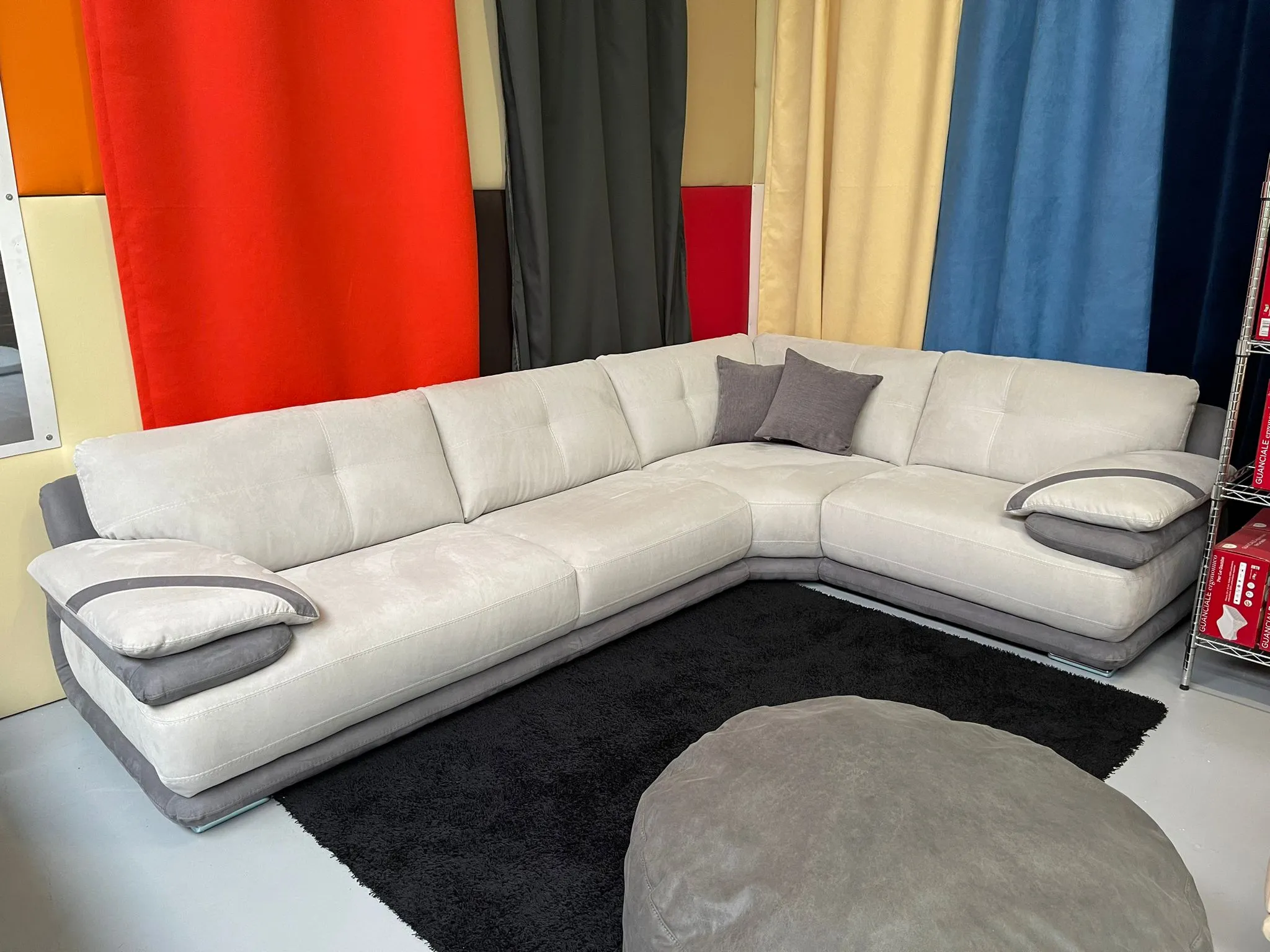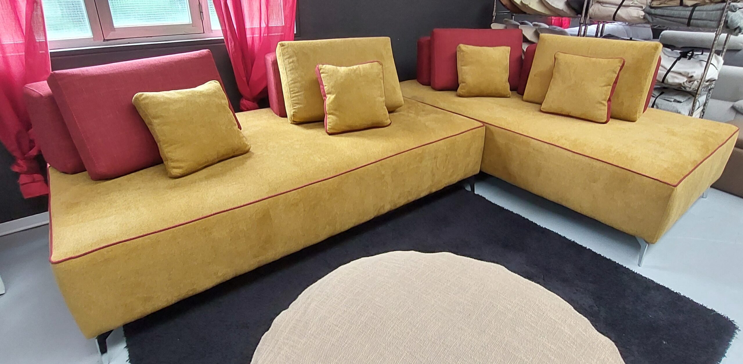 Composizione reversibile 300cm x 230cm con pouf 100x70 e 2 pogg.ta tutta in particolare tessuto spessorato