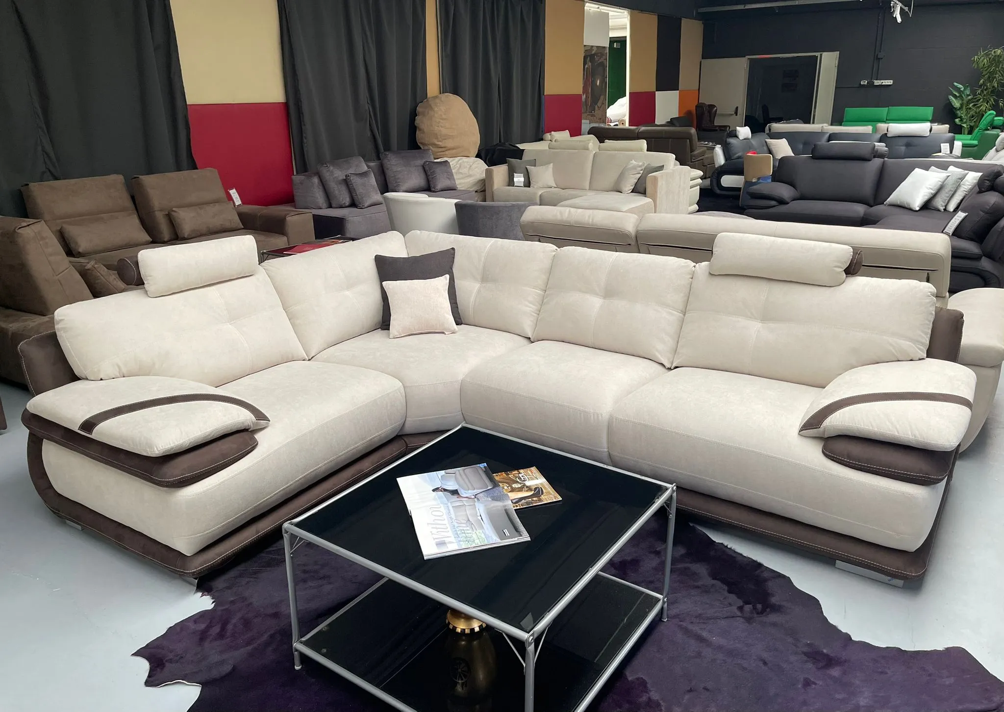 Composizione 300cm x 370cm con pouf tavolino con vetro tutta in vera pelle di prima qualità