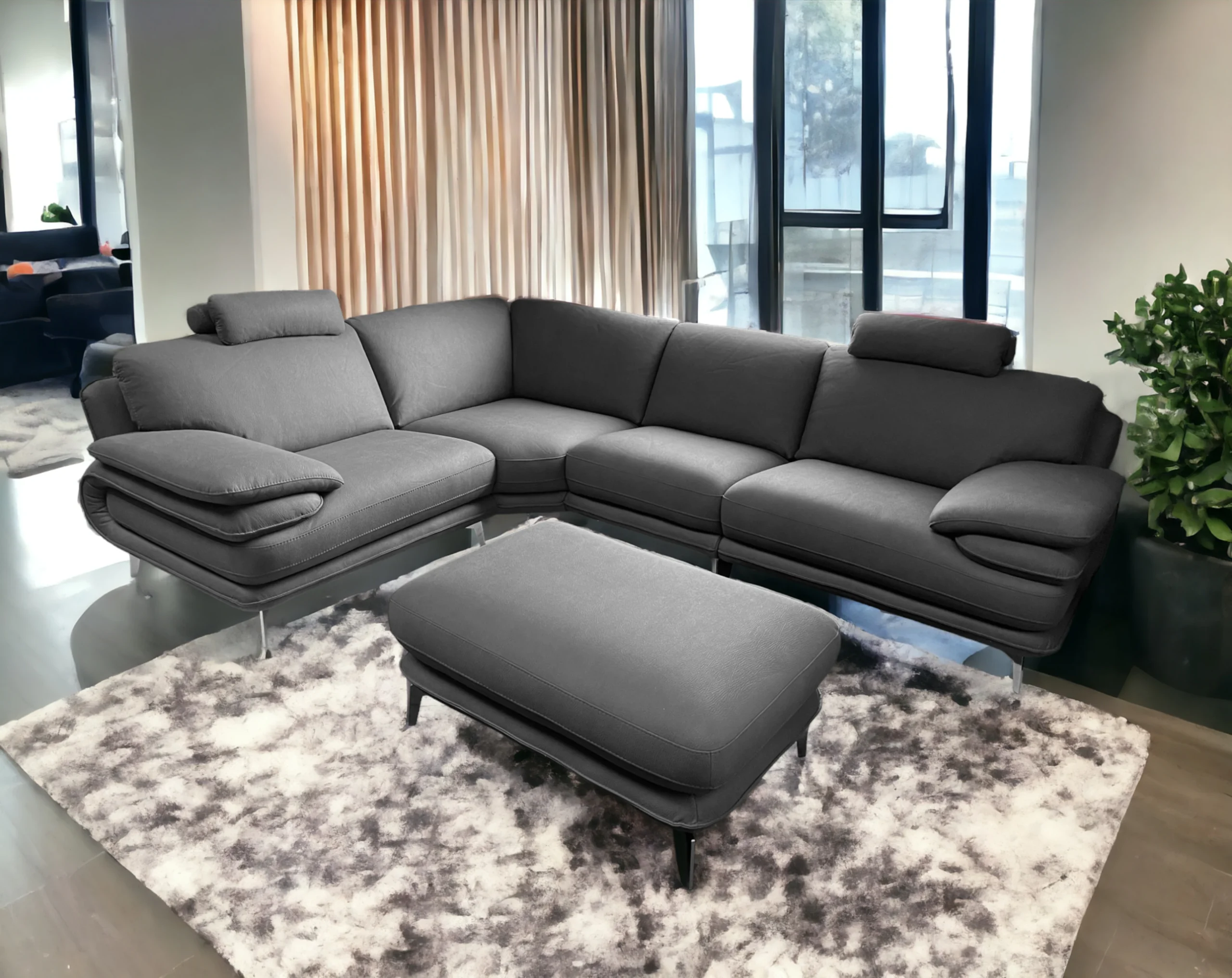 Composizione reversibile 300x230 + 2 poggiatesta + pouf 100×70 tutta in vera pelle spessorata di prima qualità